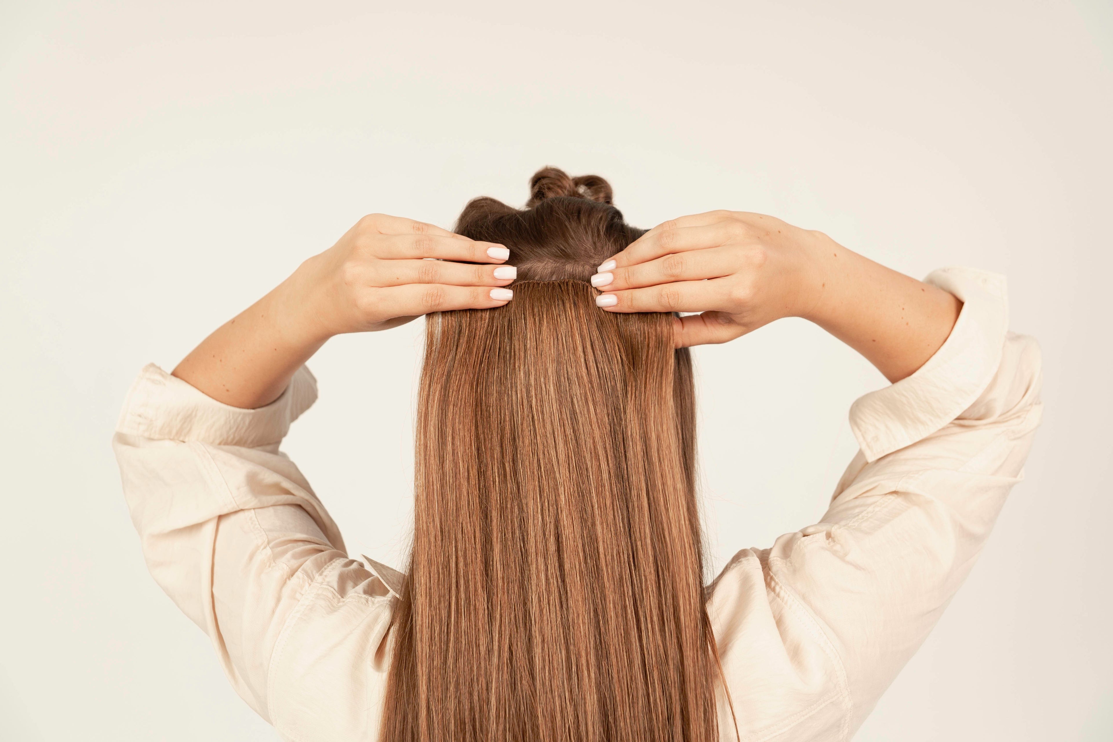 Susegus visus tresus formuokite norimą šukuoseną ir švelniai prašukuokite visus plaukus, kad prisegti plaukai tolygiai susilietų su Jūsų natūraliais plaukais.